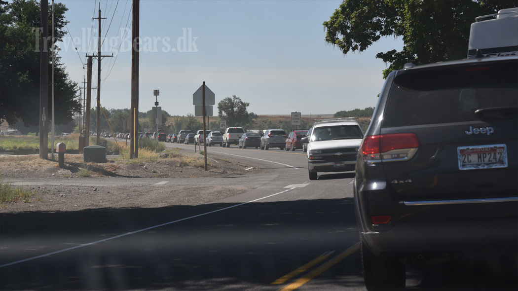 After a bit more than 2 minutes the light slowly started to come back. Then it was all over and we started to head back. Leaving Weiser, we could see why there had been warnings of trafic congestion: ahead of us was a long line of cars stretching for ... maybe a mile!